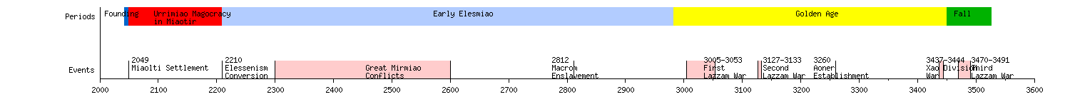 from:2049 till:2210 shift:(- | from:2049 till:2210 shift:(-30,$dy2) text:Urrimiao_Magocracy~in_Miaotir color:red | ||