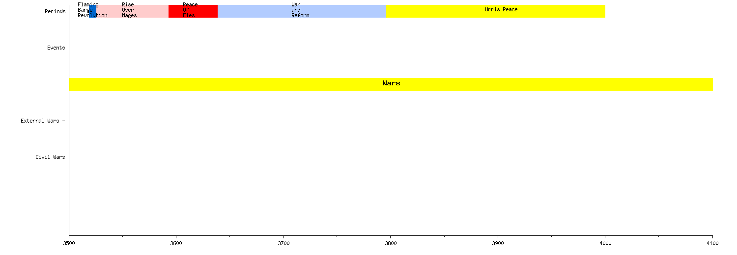 This last war was extremely costly for the republic and highly unpopular. The military decisions were, at that time, made by the Rivers Senate because it functionally held executive power. The Lands Senate wanted a place in these decisions, however this was refused. This argument degenerated in a civil war, when the Overseeing Tribunal ruled in favor of Nirta in 3675. Two Generals supported Nirta, two supported Miaolti and two stayed neutral, the admiral of the River Fleet supported Miaolti. This allowed the Rivers Senate to enter Nirta in 3676, they burned the Lands Senate. However their armies couldn't take control of the city. They had to withdraw from the city. In the following years the civil war expanded to most of the republic. With popular militias supported by Nirta clashing with the private armies of rich merchants. The war continued until 3681 when a peace agreement was signed in Rubliei. The Lands Senate agreed to create the Bounding Assembly, in which the Lands Chancellor had a seat. This settled the conflict over executive power.