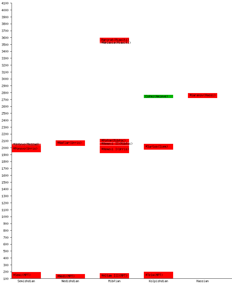 Each one of the first 26 grandchildren of Altam started a lineage of Archimages, those held great importance in culture and politics of the flying cats. The following timelines are divided by the ethnicity of the first Archimage of the lineage (even if it changed after). Miao Archimages are in red, Micium in grey, Muccin in blue, Mimie in yellow, Mecim in green and Maccin in purple. Next to the name of the Archimage is their residency. Names with * hold an independent magocracy, others are dependent.